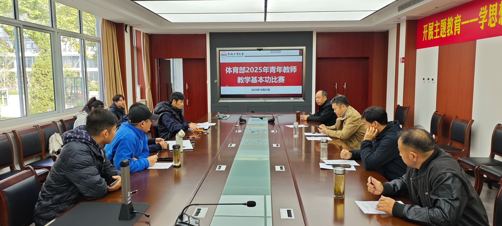 为进一步强化青年教师立德树人理念,夯实教学基本功,提升教学业务能力,体育部于2025年10月22日上午在屯溪路校区体育部会议室举办2025年青年教师教学基本功比赛。比赛由体育部教学与科研中心主任王勇主持,由5位老师担任评委,体育部领导班子全程参与。