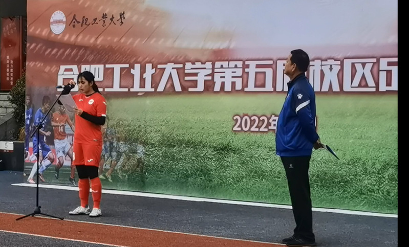 2022年10月5日,合肥工业大学第五届校区足球对抗赛在宣城校区风雨操场正式拉开帷幕,开幕式由合肥工业大学体育部副主任聂劲松主持,屯溪路校区、翡翠湖校区、宣城校区男女子足球队和教工元老足球队七队运动员和裁判组全体成员出席。体育部主任柴业宏在开幕式上致辞,向为本次比赛付出辛勤劳动的所有教练员、裁判员、运动员表示衷心的感谢。他表示学校历来高度重视体育工作,本次足球比赛是落实素质教育和校园体育文化建设的重要活动。三校区足球对抗赛搭建一个校区间的交流平台,营造良好的校园足球文化氛围,希望每一位参赛者以青春阳光的蓬勃朝气、敢于挑战的竞争勇气投入到比赛当中,让运动员的活力迸发在比赛场上的每一个角落,展现当代工大人的体育水平和精神风貌。在运动员代表、裁判员代表分别宣誓后,宣城校区管委会陈发祥副主任宣布本届校区足球对抗赛开幕。