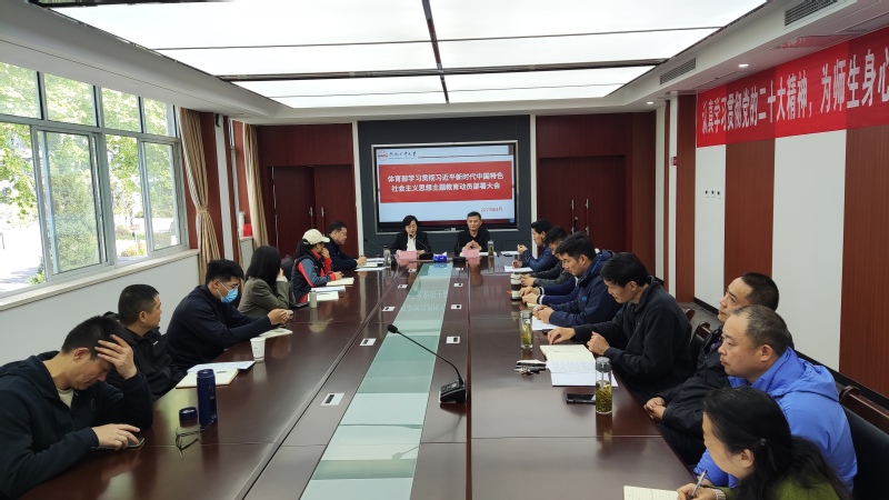 党总支书记祖权介绍了体育部开展学习贯彻习近平新时代中国特色社会主义思想主题教育工作方案,就体育部开展主题教育工作进行了动员部署。祖权在动员部署讲话中指出,开展学习贯彻习近平新时代中国特色社会主义思想主题教育,是推动贯彻党的二十大战略部署的有力举措,是深入推进新时代新征程党的建设新的伟大工程的重大部署。开展学习贯彻习近平新时代中国特色社会主义思想主题教育,就是要教育引导党员、干部更加深刻领悟“两个确立”的决定性意义,更加自觉增强“四个意识”、坚定“四个自信”、做到“两个维护”,始终在思想上政治上行动上同以习近平同志为核心的党中央保持高度一致,切实把思想和行动统一到习近平总书记重要讲话精神和党中央、教育部党组的决策部署上来。他要求,体育部全体党员干部要牢牢把握“学思想、强党性、重实践、建新功”的总要求,坚持学思用贯通、知信行统一,把习近平新时代中国特色社会主义思想转化为坚定理想、锤炼党性、指导实践、推动工作的强大力量,转化为践行“体育育人”“体育强国”的使命担当和不竭动力,团结奋进谱写新时代学校体育工作高质量建设发展的新篇章。主题教育要聚焦主题主线,把理论学习、调查研究、推动发展、检视整改等贯通起来,有机融合、一体推进,深入学习贯彻习近平新时代中国特色社会主义思想和党的二十大精神,引领教职工在牢记“国之大者”中推动思想境界提升,在“健全以‘以体育人’为特色的‘全员全过程全方位’工作格局,深化体育教学‘课内外一体化’改革,将主题教育成果切实转化为奋力推进新时代学校体育工作高质量发展的生动实践。