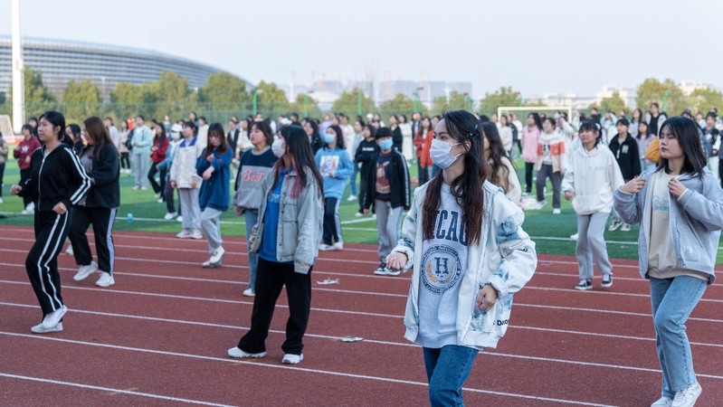 徐老师常说“参加这个户外健身运动最困难的一步就是从宿舍走到操场”。确实只要你走到操场,音乐一响开始跟着老师运动就完全沉浸其中了,在那么多人的陪伴下是不会中途放弃的。而大家开始跳起来、动起来的感染力是非常强的,后来老师以及职工家属也知道周三下午有这个活动,会准时来到绿茵场加入我们。每一次运动完,身上出了一层薄汗,心情也会跟着舒畅许多。