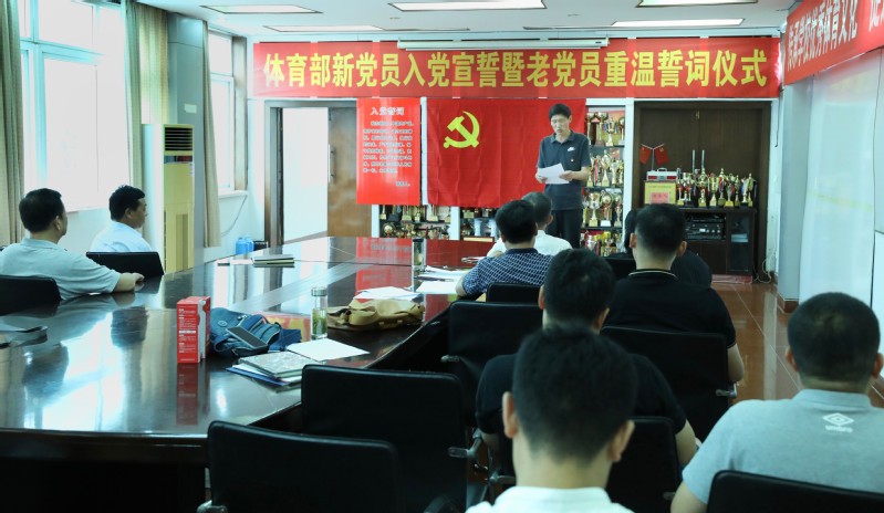 为迎接中国共产党建党100周年,进一步增强党员意识和党性修养,6月30日下午体育部在屯溪路二楼会议室举行了新党员入党宣誓暨老党员重温入党誓词仪式。体育部党总支书记祖权领誓并讲话,体育部主任柴业宏主持仪式,体育部全体党员参加了活动。