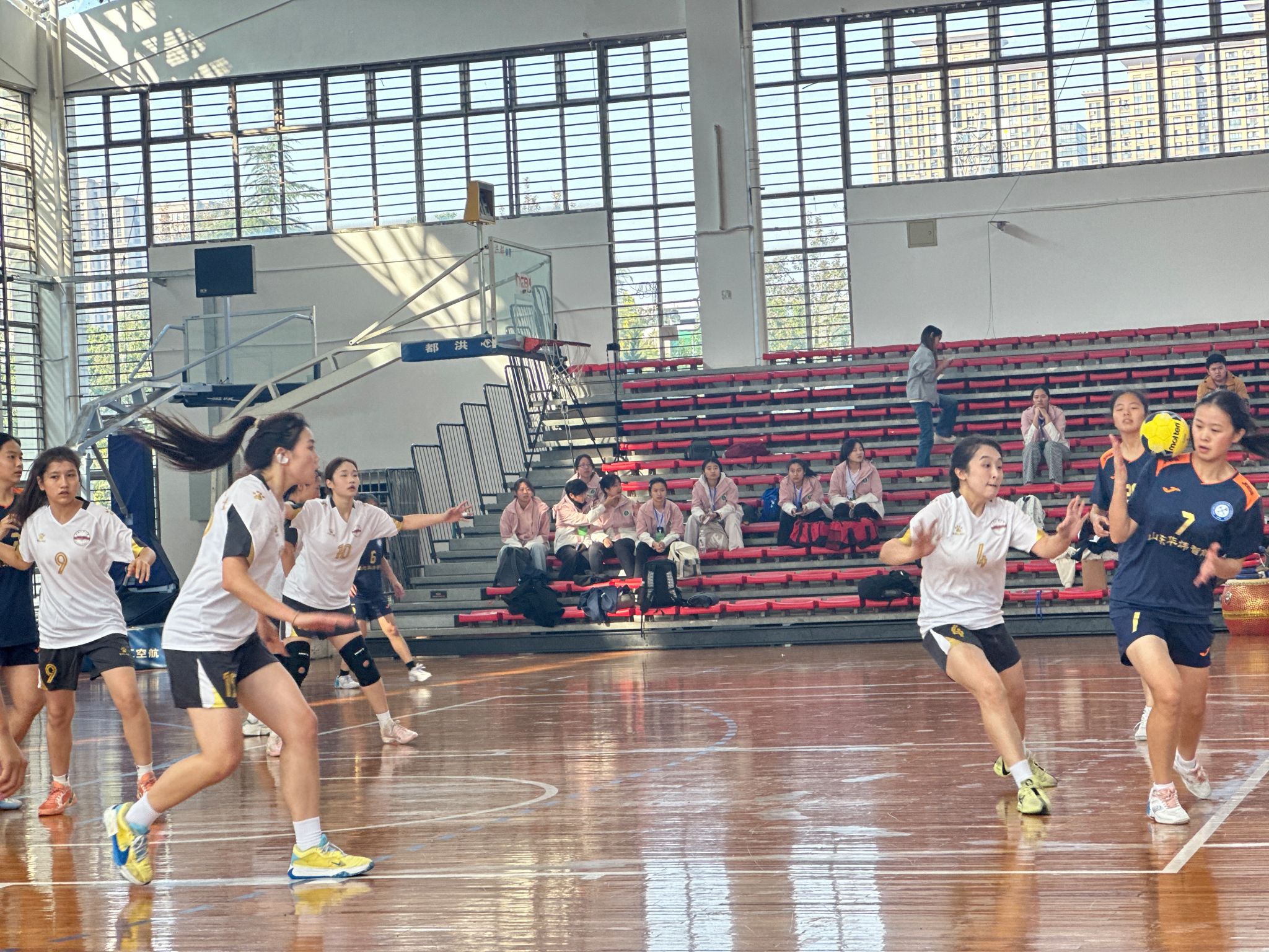 揭幕战中,参赛选手们迅速进入状态,传球、突破、射门、防守一气呵成。赛场上,队员们配合默契,攻防转换迅捷,每一个精彩瞬间都赢得观众热烈掌声。裁判团队秉公执裁,赛事有序推进,展现了我校出色的赛事组织能力与服务水平。首日,我校男女手球队双双告捷,迎来开门红。