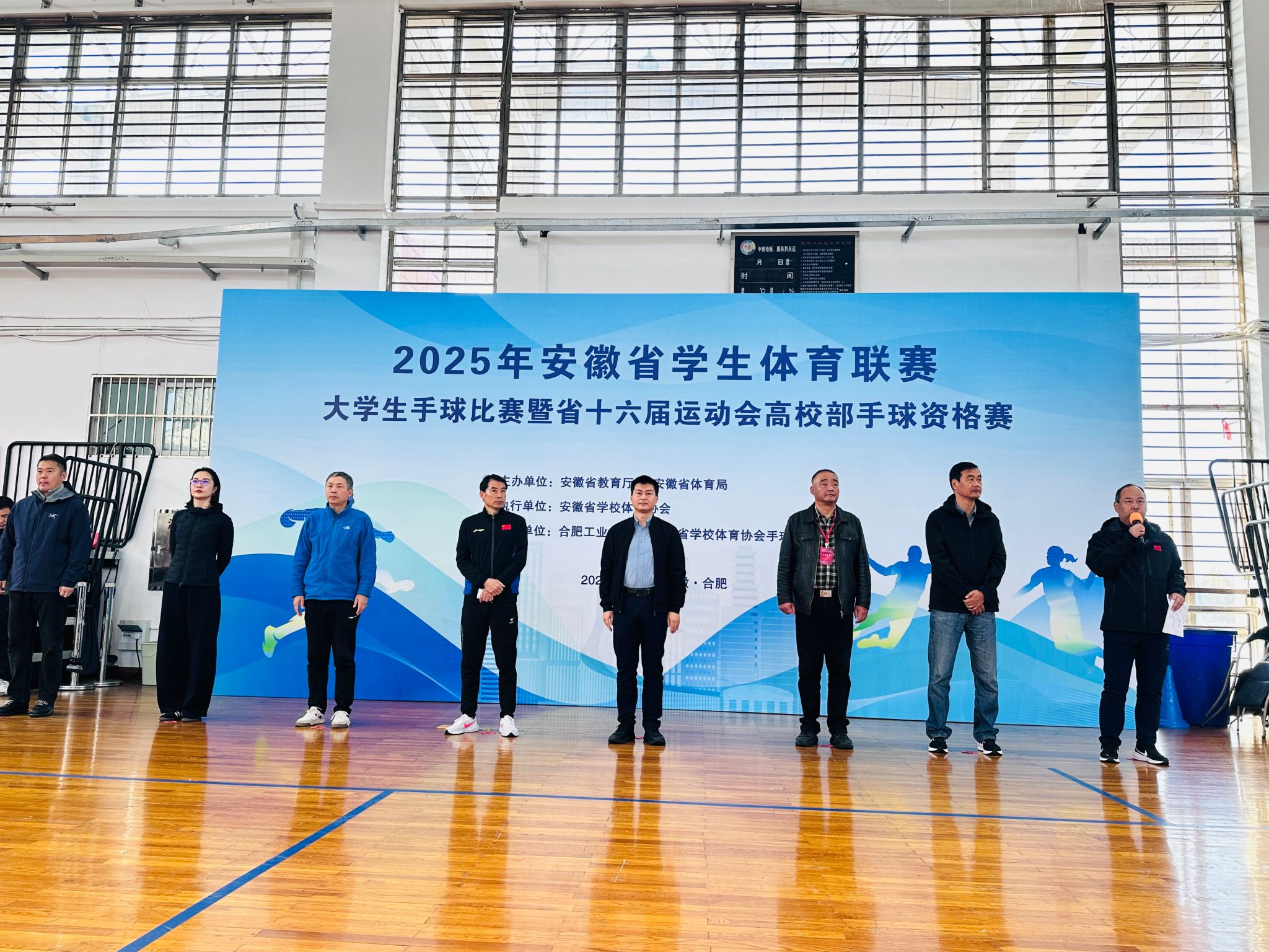 秋高气爽,竞技正燃。11月13日,2025年安徽省学生体育联赛大学生手球比赛在我校拉开帷幕。赛事由安徽省教育厅、安徽省体育局联合主办,我校承办,来自全省26所高校、40支手球代表队齐聚赛场,以球会友,共赴这场青春与力量的竞技盛宴。