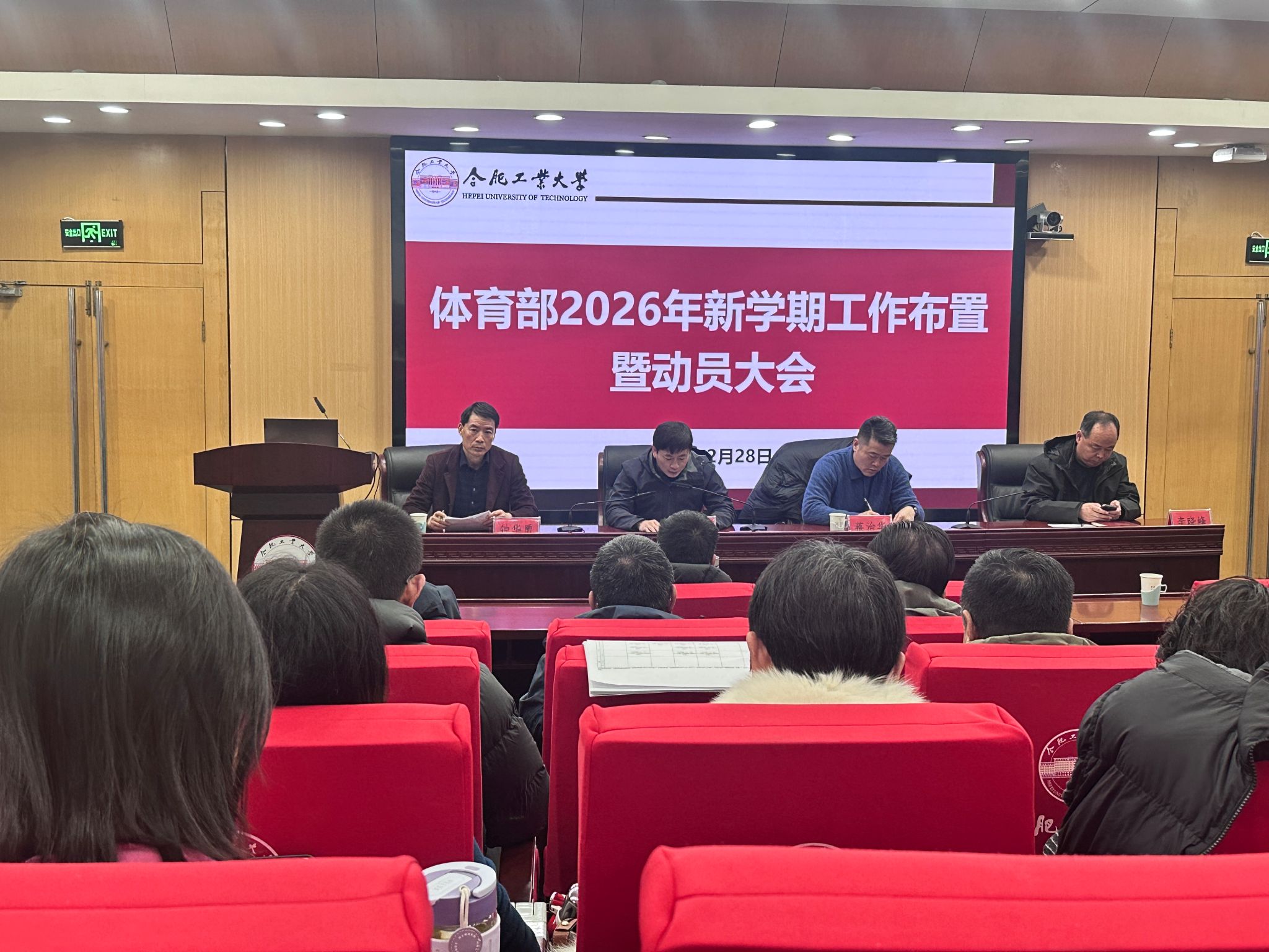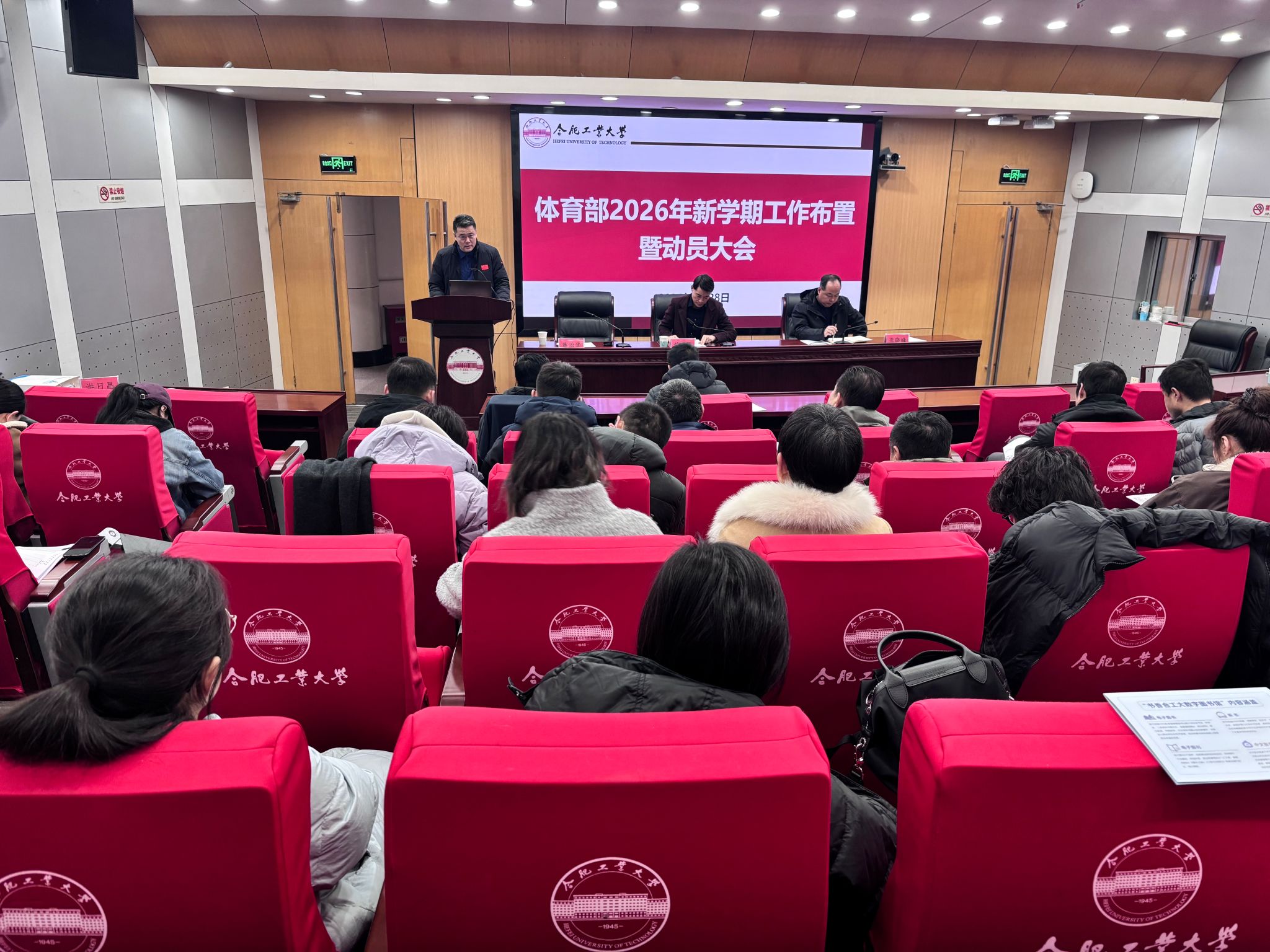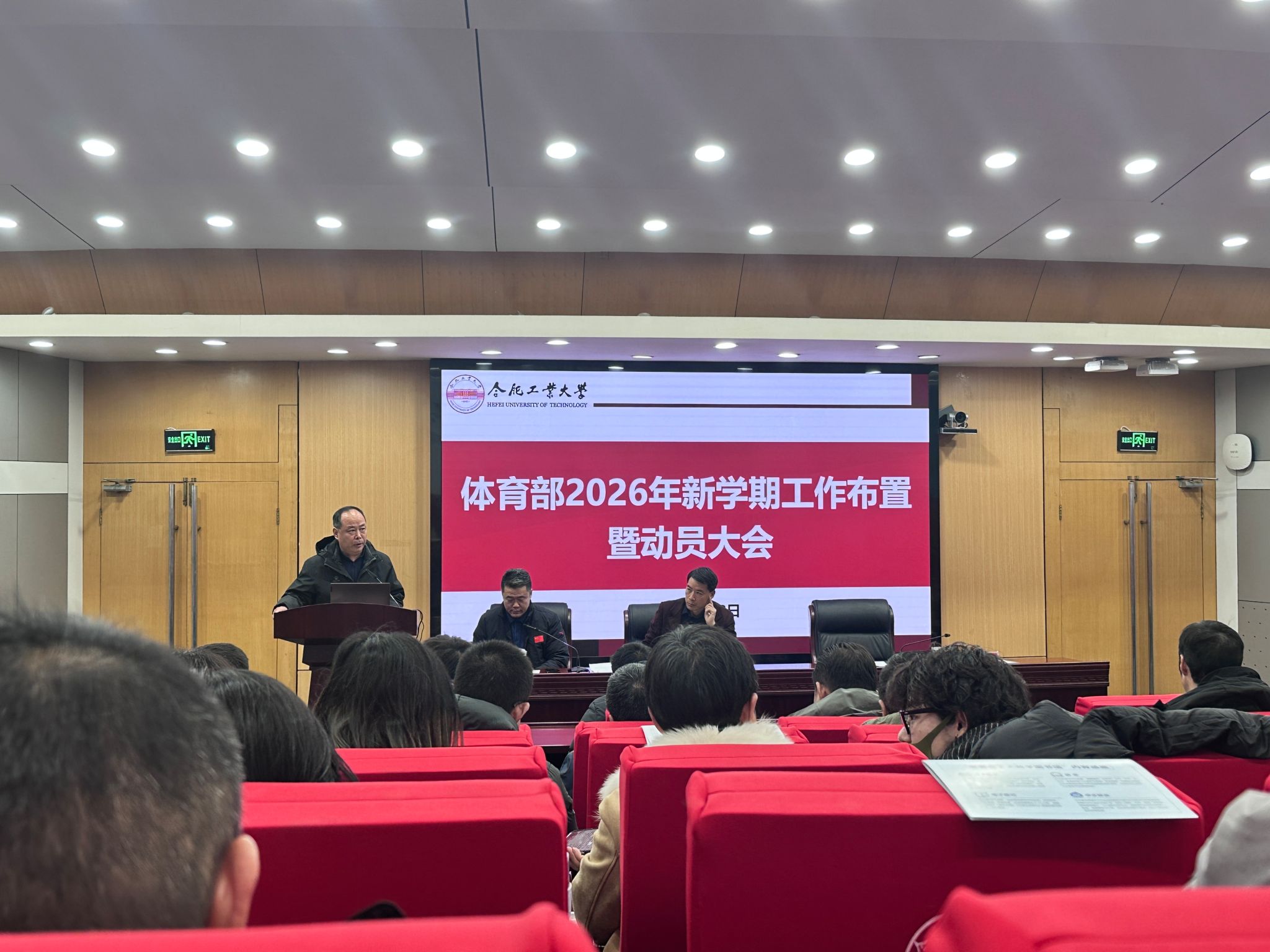会议第一阶段,体育部副主任蒋治华、李晓峰分别就分管领域作新学期工作部署。蒋治华重点围绕学生体质健康提升、教学管理优化及群体活动等提出具体要求,强调要深化体育教学改革,健全体质健康测试机制,并带领大家学习了《合肥工业大学教学事故认定及处理的暂行规定》。李晓峰从训练竞赛、人才引进、科研能力提升及场馆安全保障等方面作出了安排,强调要加强科研支撑,完善竞训体系,筑牢安全防线,为体育事业持续发展提供坚实保障。